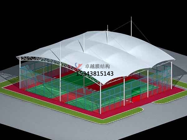膜結構適合覆蓋大跨度空間。膜結構中所使用的膜材料每平方壹公斤左右,由于自重輕,加上鋼索、鋼結構高強度材料的采用,與受力體系簡潔合理,故使膜結構適合跨越大空間而形成開闊的無柱大跨度結構體系。