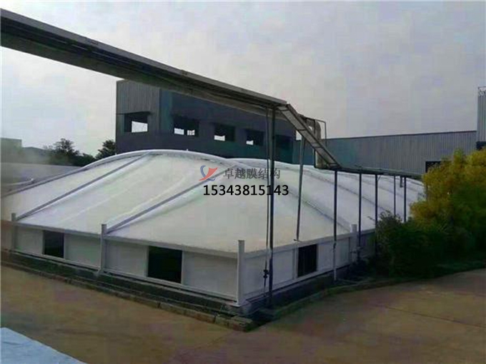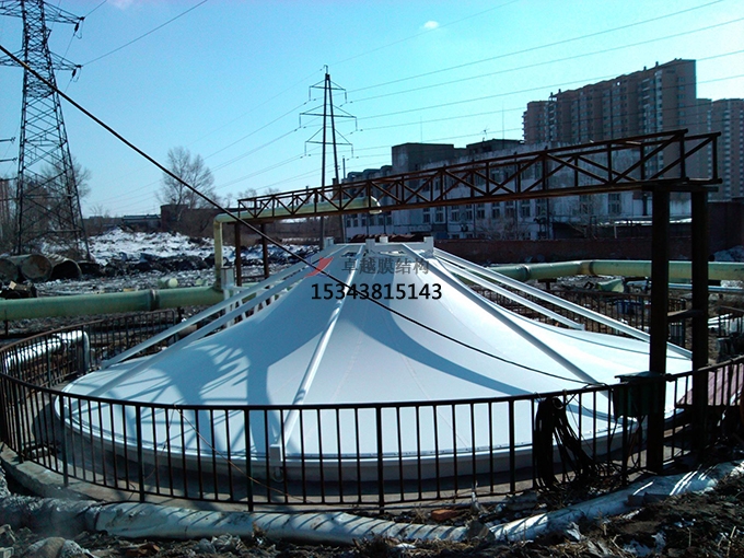 2.確認(rèn)膜材的品種:污水池加蓋除臭選用的膜材有許多中,應(yīng)根據(jù)池體的跨度挑選適宜的膜材才干達到預(yù)期的作用.一般,關(guān)于大跨度而言,選用污水池專用膜材氟碳纖維膜比較適宜,因為這種膜材具有很強的抗腐蝕能力,能對池內(nèi)廢氣起到抗腐蝕的作用,無形中保證了膜材的使用壽命;