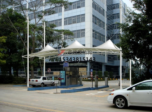 二、商業(yè)廣場(chǎng)雨棚搭建設(shè)計(jì)時(shí)應(yīng)使膜材強(qiáng)度具有足夠的安全裕度,保證膜面張拉后能正常承載。同時(shí)節(jié)點(diǎn)構(gòu)造要考慮膜面因材料徐變、連接松動(dòng)、膜面積水等發(fā)生膜面松弛而需進(jìn)行二次張拉的可能性。節(jié)點(diǎn)連接件應(yīng)具有足夠強(qiáng)度、剛度,防止失效。