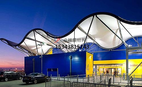 膜結(jié)構(gòu)景觀停車棚除前面所述外, 膜結(jié)構(gòu)景觀與其它結(jié)構(gòu)配合發(fā)展的空間很大, 會使建筑結(jié)構(gòu)形式變化更多、更新。膜結(jié)構(gòu)景觀需要大量迭代計算, 而且要考慮非線性因素, 只有隨著計算機才能完成。它是一種全新的建筑結(jié)構(gòu)形式, 它的結(jié)構(gòu)形式的美蘊含著技術和藝術美。