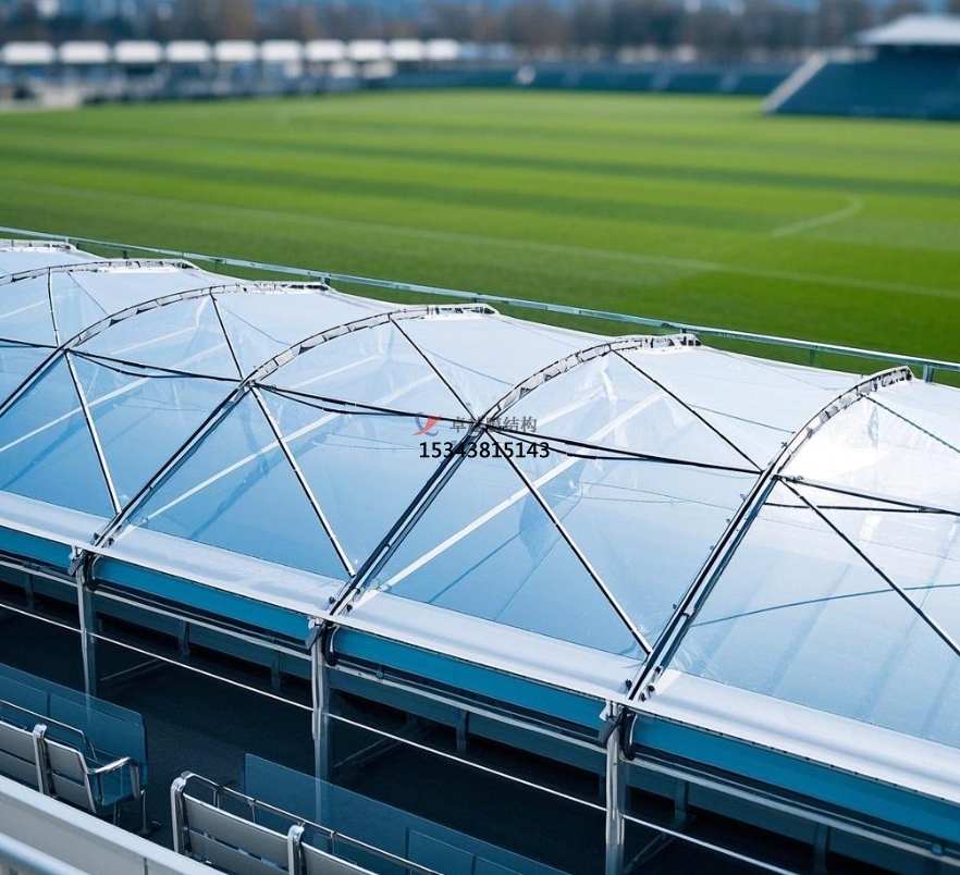 骨架式膜結(jié)構(gòu)在大型體育場館中廣泛應(yīng)用,其穩(wěn)定的鋼結(jié)構(gòu)骨架支撐大面積膜材,形成開闊的內(nèi)部空間。以足球場看臺為例,骨架式膜結(jié)構(gòu)可覆蓋整個(gè)觀眾區(qū)域,為上萬人提供舒適觀賽空間,且內(nèi)部無立柱阻擋視線,觀眾容量比傳統(tǒng)有柱看臺增加 10% - 15%。?