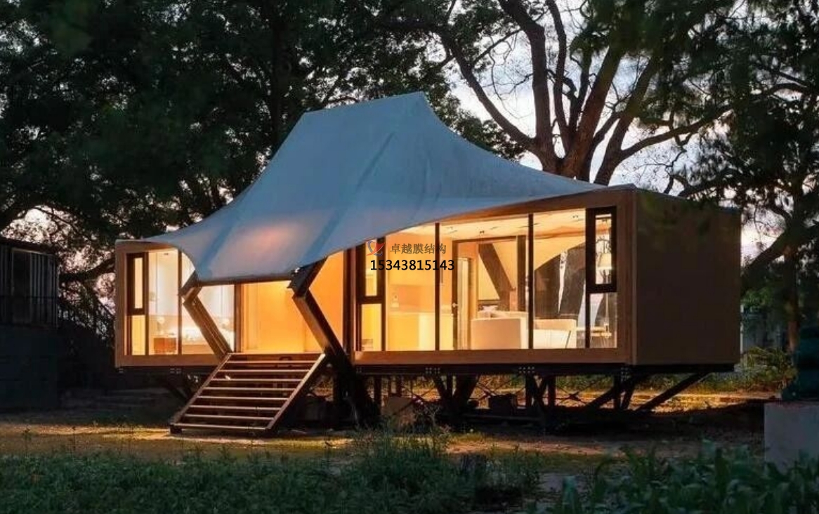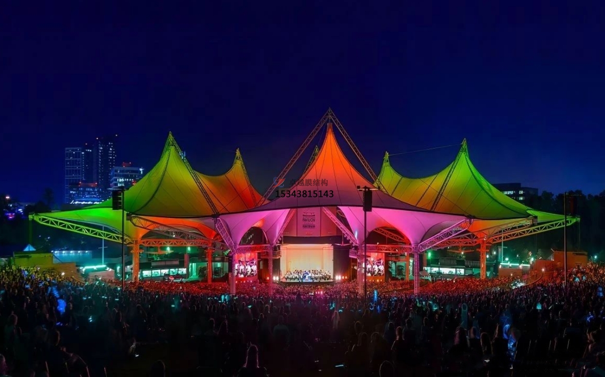 膜結(jié)構(gòu)景觀以其獨(dú)特的外觀和多樣化的功能而備受關(guān)注。膜結(jié)構(gòu)景觀不僅在建筑物上創(chuàng)造出令人印象深刻的視覺(jué)效果,同時(shí)還具有良好的抗風(fēng)、防水、強(qiáng)度高、耐候性好,防火阻燃、自潔性好,并且不受紫外光線的影響,使用壽命在20年以上。