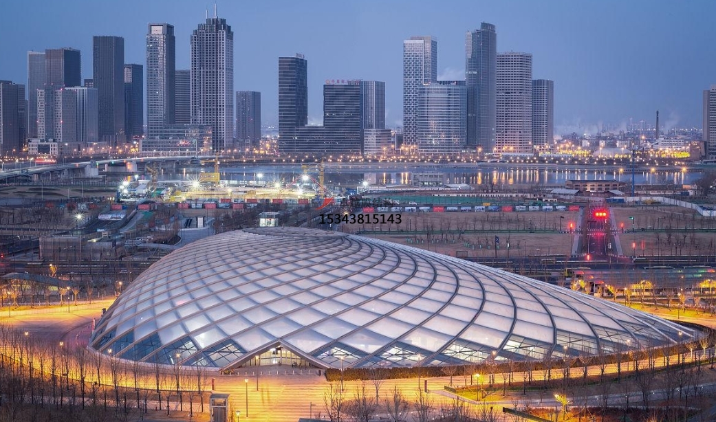 宜賓高鐵站在渝昆高鐵宜賓站站前交通樞紐基礎(chǔ)設(shè)施及歸納配套建設(shè)項(xiàng)目中,利用 etfe 膜結(jié)構(gòu)天幕雨棚連接車站、商業(yè)歸納體和城市綠芯公園等主要功能區(qū)域。整個天幕及天橋以鋼結(jié)構(gòu)為基礎(chǔ),天幕框架結(jié)構(gòu)選用鋼結(jié)構(gòu)或鋁合金作為承重結(jié)構(gòu),頂部掩蓋 etfe 資料和光伏玻璃,并調(diào)配流動燈光效果,完美展現(xiàn)竹和流水的規(guī)劃理念。該項(xiàng)目鋼結(jié)構(gòu)總用鋼量約 1.2 萬噸,屋面選用 etfe 通明資料,在確保規(guī)劃效果簡練與形狀優(yōu)美的一起,也為過往行人營建出天然舒適的開放空間 。