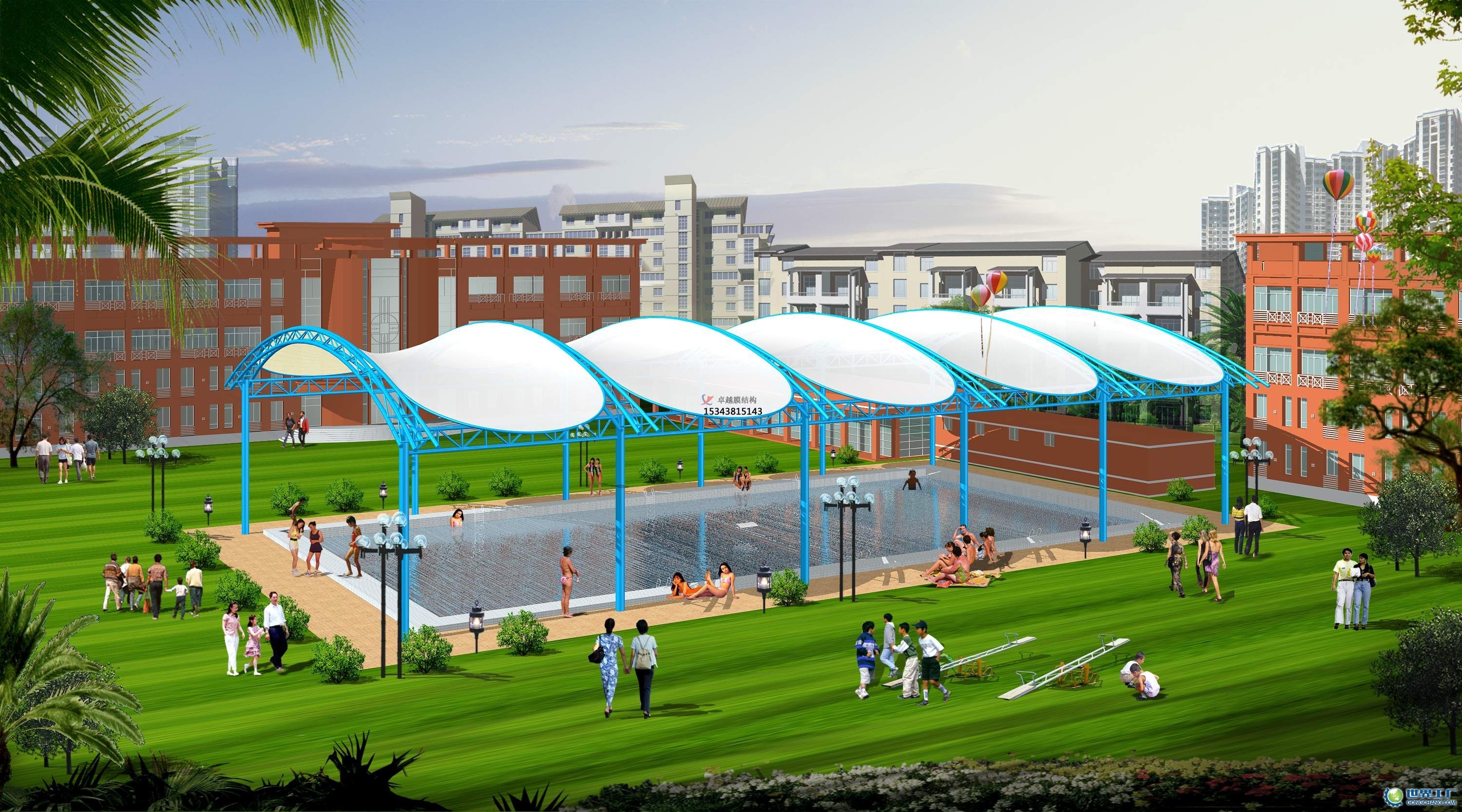 6.施工安裝到位。膜結(jié)構(gòu)的制作分為膜的裁剪、連接、配件的制作加工、包裝、運輸。制作應(yīng)符合以下工藝流程:膜材驗收,技術(shù)參數(shù)的確定,膜的裁剪,裁剪膜片的幾何尺寸的檢驗,膜片的連接,連接強度的檢驗,膜體的幾何外形的檢驗,連接件定位固定,膜體的清理,膜體的包裝,標記。