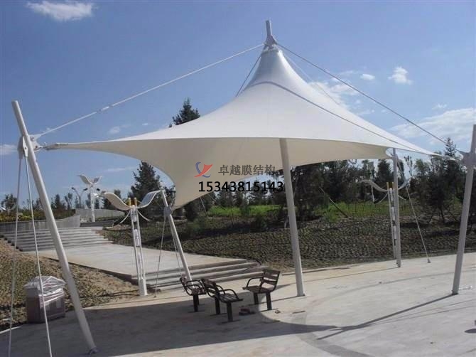 為避免膜材被撕裂,設(shè)計(jì)張拉膜景觀時(shí)應(yīng)保證膜面在張拉后具有足夠的剛度;細(xì)部構(gòu)造設(shè)計(jì)要考慮到二次張拉的可能性;對發(fā)生松弛的膜面要及時(shí)進(jìn)行二次張拉。張拉膜景觀車棚廠家節(jié)點(diǎn)設(shè)計(jì)要保證足夠的轉(zhuǎn)動(dòng)自由度,以適應(yīng)膜面在風(fēng)作用下的大變形。