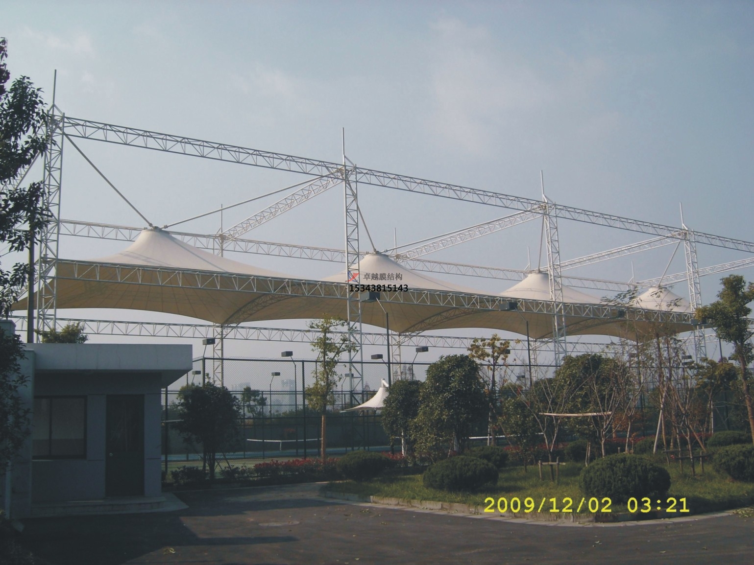 球場膜結(jié)構(gòu)的特點:大跨度空間,造型靈活多樣,輕量化與高強度,環(huán)保性能,全天候適用性。球場膜結(jié)構(gòu)采用輕質(zhì)膜材與預(yù)應(yīng)力技術(shù),實現(xiàn)無立柱大跨度覆蓋(如足球場、籃球場),提升空間利用率,充氣膜結(jié)構(gòu)通過氣壓支撐形成超大跨度,適用于需快速施工的場館。結(jié)合鋼索、骨架與曲面設(shè)計,可定制波浪形頂棚、異形看臺等復(fù)雜形態(tài),兼具功能性與藝術(shù)性,膜結(jié)構(gòu)柔性和可塑性強,可設(shè)計出各種曲線形態(tài),色彩豐富,能創(chuàng)造出視覺沖擊力強的獨特建筑外觀,成為城市地標(biāo)。PTFE、PVDF等膜材強度高、重量輕(僅為傳統(tǒng)材料的1/30),降低建筑主體負荷,耐腐蝕、抗紫外線老化,使用壽命達15-30年。白天利用自然光照明,減少人工照明需求,降低能耗;膜材可回收利用率高,符合綠色建筑理念,透光率8%-13%,減少照明能耗;熱反射性能調(diào)節(jié)室內(nèi)溫度,降低空調(diào)使用需求。自潔涂層可依賴雨水沖刷灰塵,維護成本低??癸L(fēng)、防雨、隔熱隔音,保障極端天氣下的舒適性與安全性,充氣膜結(jié)構(gòu)可快速搭建臨時場館,滿足賽事或活動靈活需求。施工周期短(部分項目僅需15天),模塊化加工降低人工與時間成本,綜合運維成本低于傳統(tǒng)鋼結(jié)構(gòu),長期使用性價比高。
