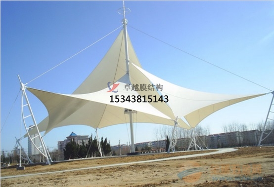 膜結(jié)構(gòu)景觀是近一段時間內(nèi)獲得迅猛發(fā)展的一種新型空間結(jié)構(gòu),它由于只承受張力,使得材料受力性能得到充分發(fā)揮,而且以重量輕,允許跨越大空間和設(shè)計成各種外形,施工周期短,維護方便,造價低廉,可滿足多方面的使用要求,易與自然環(huán)境融為一體等優(yōu)點,被國際建筑界譽為二十一世紀的建筑。