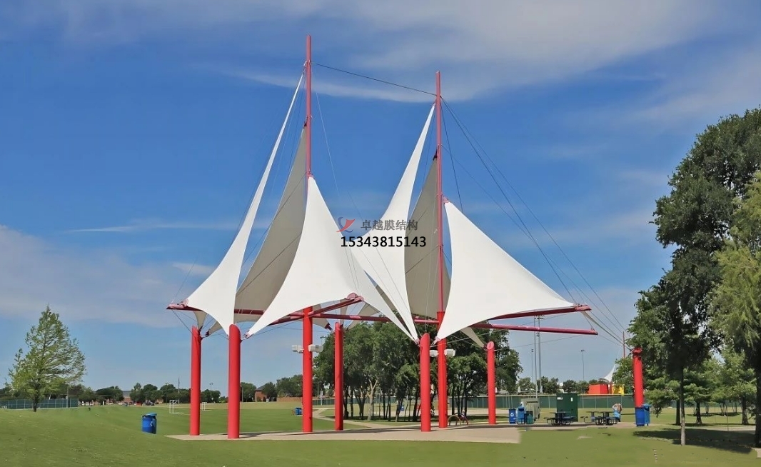 在社區(qū)和住宅小區(qū)內(nèi),景觀棚膜結(jié)構(gòu)也有著諸多應(yīng)用。比如在小區(qū)的兒童游樂區(qū)設(shè)置膜結(jié)構(gòu)遮陽棚,讓孩子們在玩耍時能夠避免陽光直射;在小區(qū)的休閑廣場上搭建膜結(jié)構(gòu)景觀亭,為居民們提供一個聊天、下棋、休閑娛樂的好去處;或者在小區(qū)的停車位上方安裝膜結(jié)構(gòu)車棚,既保護了車輛免受日曬雨淋,又提升了小區(qū)整體的美觀度。
