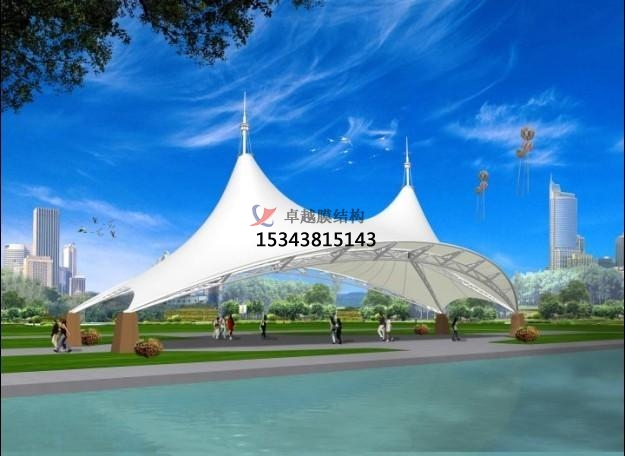2. 藝術(shù)性:除了一般雨蓬不可比擬的實用、耐用、遮風擋雨的功能外,膜結(jié)構(gòu)景觀雨蓬更是一座雕塑,一件藝術(shù)品,給人美的視覺享受。其柔美,其曲線,其剛?cè)岵?,其豐富造型,其潔白無瑕,讓人眼前一亮,回味悠長。