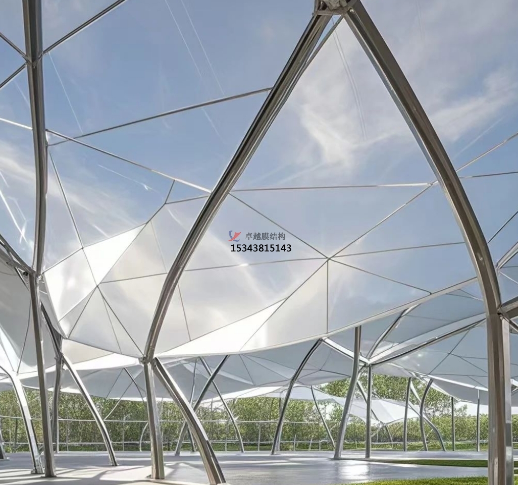 ‌張拉索膜結(jié)構(gòu)‌:張拉索膜結(jié)構(gòu)通過張拉使膜的內(nèi)部產(chǎn)生一定的預應(yīng)力,以抵御外界的風荷載和其他荷載。這種結(jié)構(gòu)可以根據(jù)需要制成任意復雜曲面形狀,體現(xiàn)自然流暢之美,同時膜材的多種顏色選擇也使其能更好地適應(yīng)周邊環(huán)境,滿足建筑效果要求。